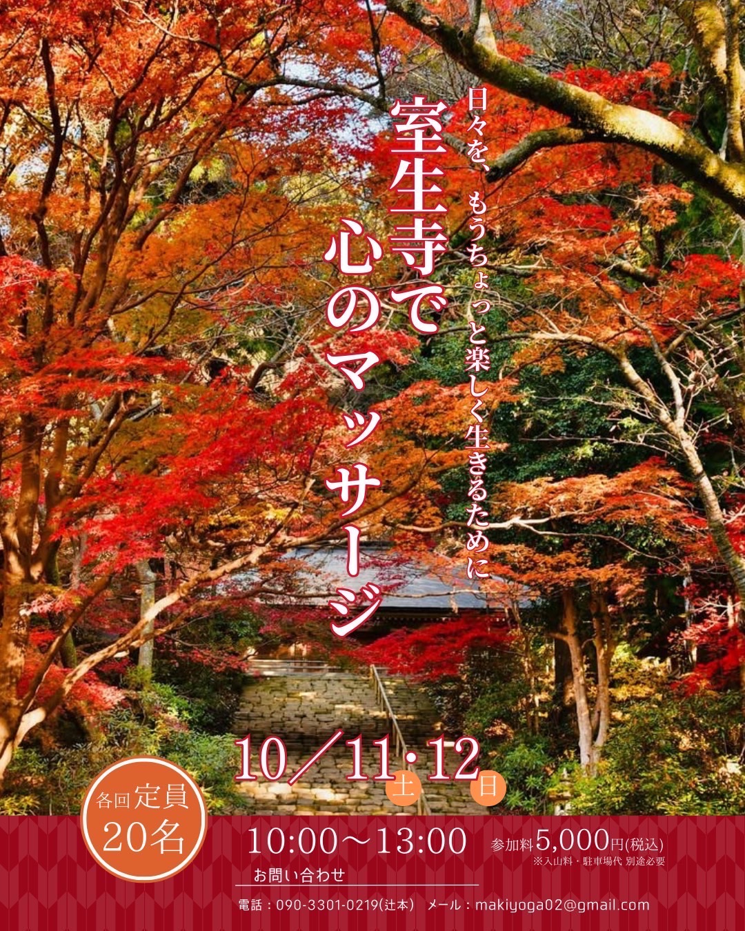 お問合せ 090-3301-0219(辻本) メール makiyoga02@gmail.com