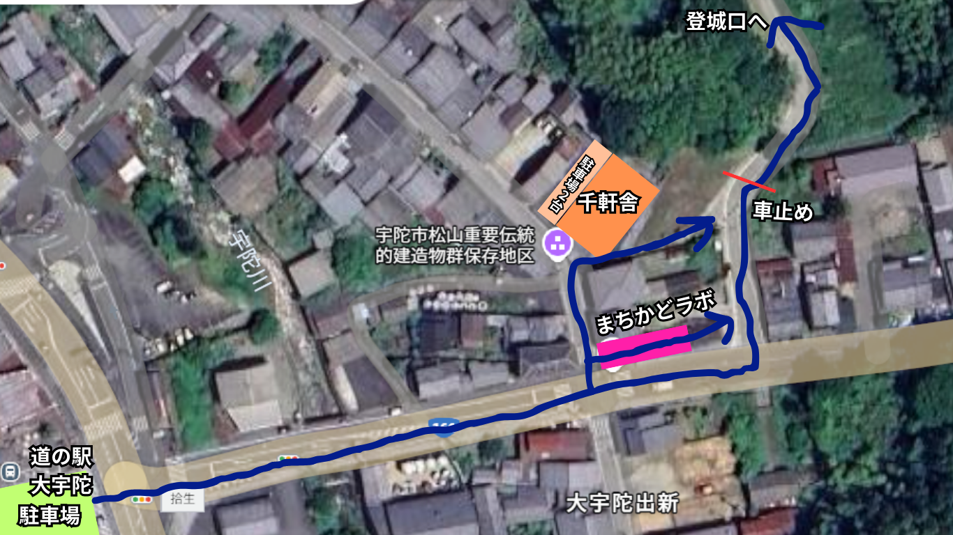 道の駅宇陀路大宇陀 → まちかどラボ → 千軒舎 → 宇陀松山城跡 → 春日神社 → 春日門跡 → 西口関門
