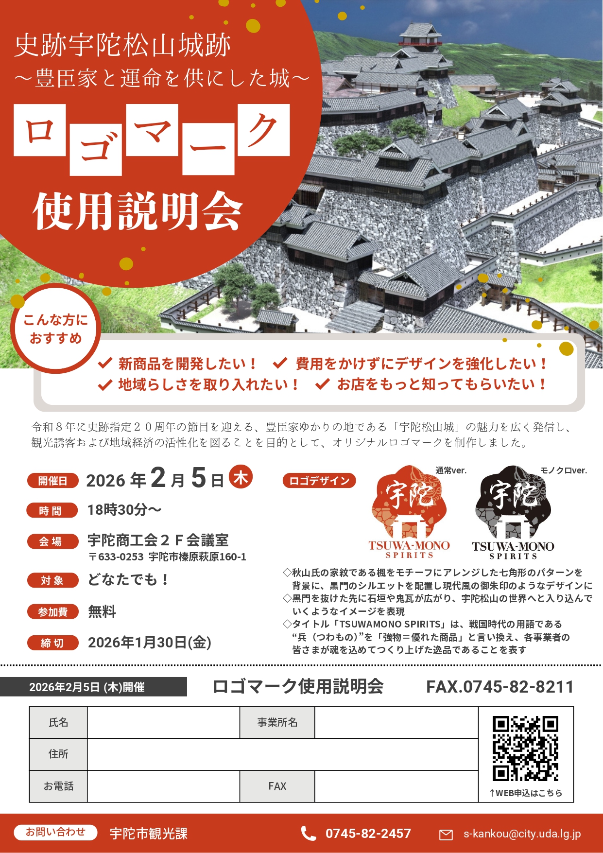 また、豊臣家ゆかりの地でもある「宇陀松山城」の魅力を広く発信し、観光誘客および地域経済の活性化を図ることを目的として、オリジナルロゴマークを制作しました。