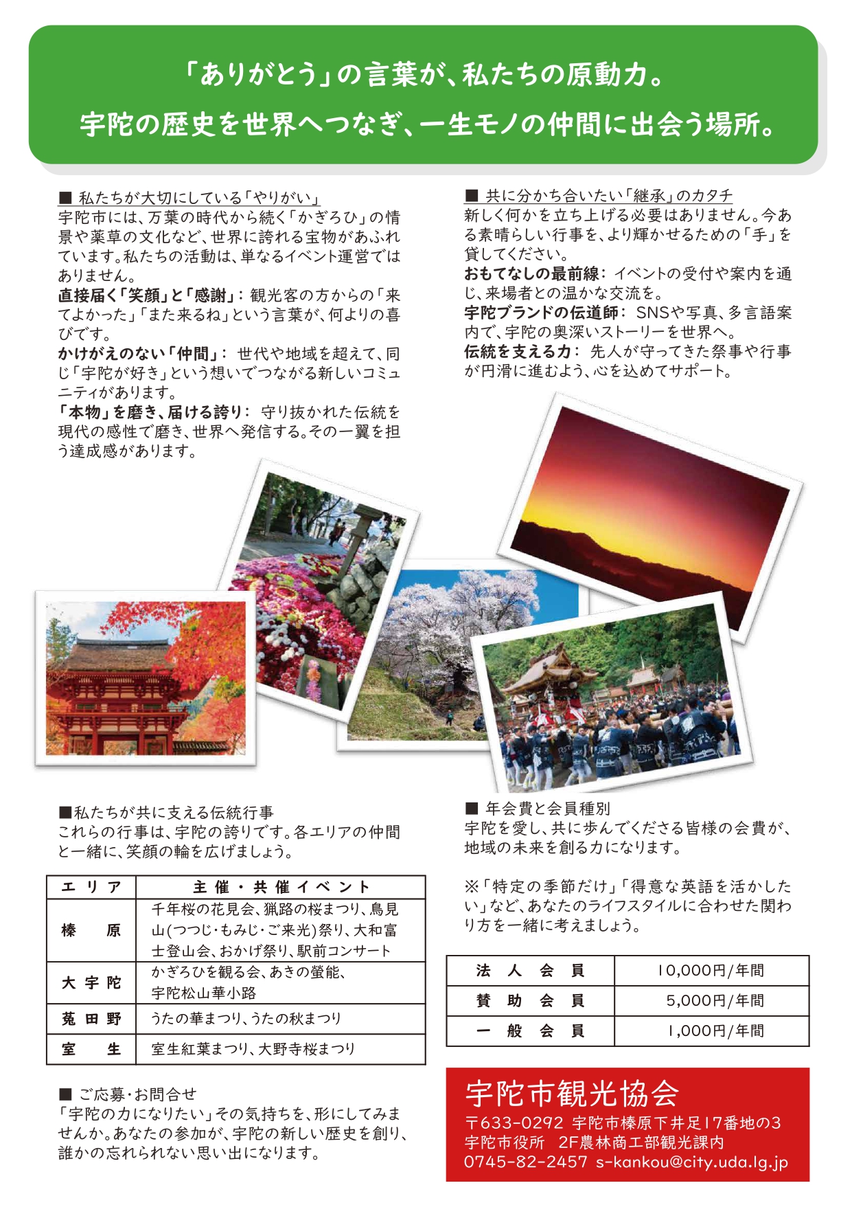 ホーム›お知らせ›宇陀の観光盛りアゲ隊(宇陀市観光協会)会員募集